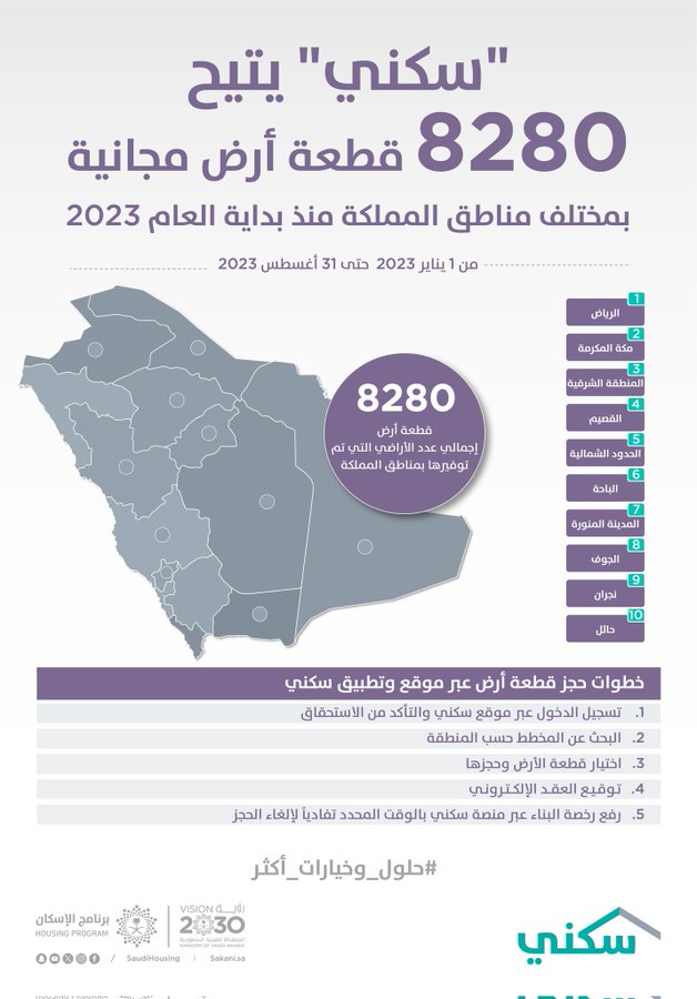 استمراراً للجهود المتواصلة لتوفير الخيارات والحلول السكنية المتنوعة للأسر السعودية، أتاح برنامج سكني عبر تطبيقه وموقعه الإلكتروني 8280 قطعة أرض للمستفيدين من البرنامج منذ بداية العام حتى نهاية أغسطس 2023، وسيستمر البرنامج – بإذن الله – في طرح المزيد من الأراضي مستقبلاً في مختلف… pic.twitter.com/8FBcWMEpiX