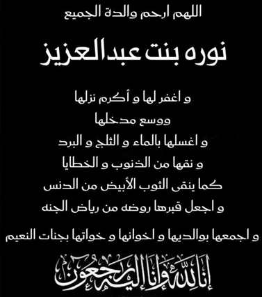 وكان الديوان الملكي قد نعاها اليوم على صفحته الرسمية في موقع التواصل الاجتماعي “اكس” وتواصل عدد كبير من المتابعين مع خبر وفاة الأميرة نوره رحمها الله وغفر لها ودعوا لها أن يتغمدها الله برحمته.